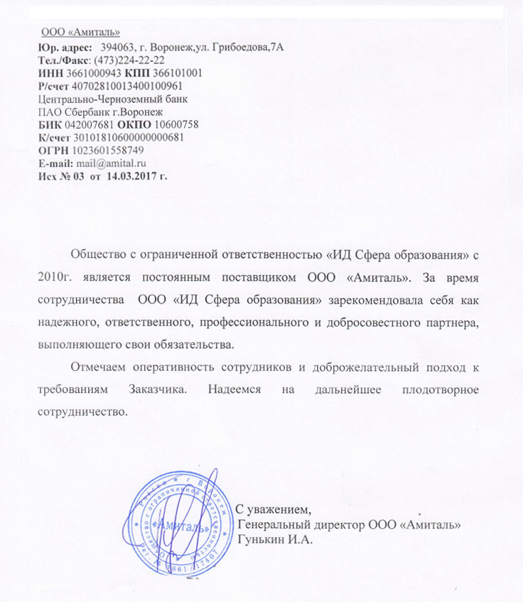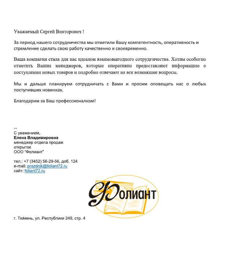 Благодарность от наших клиентов